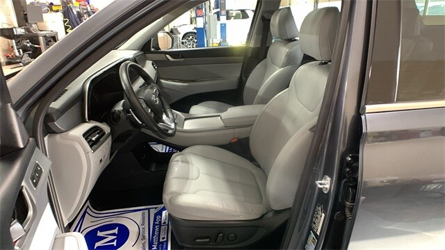 Steel Graphite 2020 Hyundai Palisade SEL AWD 8-Speed Automatic with SHIFTRONIC V6 115-Volt AC Power Outlet, 3.648 Axle Ratio, 3rd row seats: split-bench, 3rd Row USB Outlets, 4-Wheel Disc Brakes, 6 Speakers, 7" High Resolution Cluster Display, 8-Way Power Adjustable Passenger Seat, ABS brakes, Air Conditioning, Alloy wheels, AM/FM radio, Apple CarPlay & Android Auto, Artificial Leather-Wrapped Dashboard, Auto High-beam Headlights, Auto Leveling Rear Suspension, Auto-dimming Rear-View mirror, Automatic temperature control, Bi-LED Headlights, Brake assist, Bumpers: body-color, Carpeted Floor Mats, Convenience Package P2, Delay-off headlights, Driver door bin, Driver vanity mirror, Dual front impact airbags, Dual front side impact airbags, Electronic Stability Control, First Aid Kit, Four wheel independent suspension, Front anti-roll bar, Front Bucket Seats, Front Center Armrest, Front dual zone A/C, Front reading lights, Fully automatic headlights, Garage door transmitter: HomeLink, Hands-Free Smart Liftgate w/Auto Open, Heated 2nd Row Seats, Heated door mirrors, Heated Front Bucket Seats, Heated front seats, Heated Steering Wheel, Illuminated entry, Integrated Memory System, Knee airbag, Leather Seat Trim, LED Taillights, Low tire pressure warning, Occupant sensing airbag, Outside temperature display, Overhead airbag, Overhead console, Panic alarm, Parking Distance Warning - Forward, Passenger door bin, Passenger vanity mirror, Power 3rd Row Seating, Power door mirrors, Power driver seat, Power steering, Power Sunroof P5, Power windows, Premium & Drive Guidance, Premium Package P3, Radio data system, Radio: AM/FM/MP3 Display Audio, Radio: AM/FM/MP3 Premium Audio System, Rear air conditioning, Rear anti-roll bar, Rear Side Window Sunshades, Rear window defroster, Rear window wiper, Reclining 3rd row seat, Remote keyless entry, Security system, Speed control, Speed-sensing steering, Split folding rear seat, Spoiler, Stain Resistant Cloth Seat Trim, Steering wheel mounted audio controls, Tachometer, Telescoping steering wheel, Tilt steering wheel, Tow Hitch, Traction control, Trip computer, Turn signal indicator mirrors, Ultrasonic Rear Seat Occupant Minder, Variably intermittent wipers, Wheels: 18" x 7.5J Machine Finish Alloy, Wheels: 20"x 7.5J Split 5-Spoke Machined Alloy, Wireless Phone Charger.